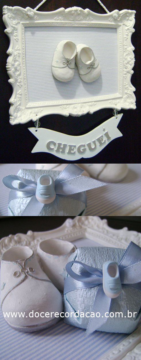 Que tal fazer um composê do adereço para a porta com o Bem Nascido? Este muito especial, embalado em papel importado acetinado e texturizado, enriquecido com exclusivo mini tênis emborrachado. Mais uma exclusividade da Doce Recordação, sempre preocupada em proporcionar o diferencial para seus clientes.