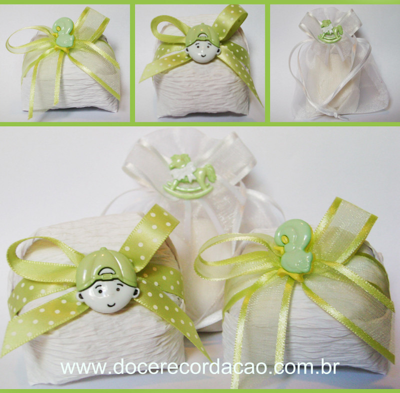 Se você quis manter surpresa e ainda não sabe o sexo do bebê, que tal recebê-lo num clima alegre e refrescante que o verde menta proporciona enriquecido com um detalhe decorativo no contexto infantil que faz toda a diferença? Seja no delicioso Bem Nascido da Doce Recordação embalado nos pacotinhos de presente ou nos saquinhos de organza, sua visita ficará eternamente grata.